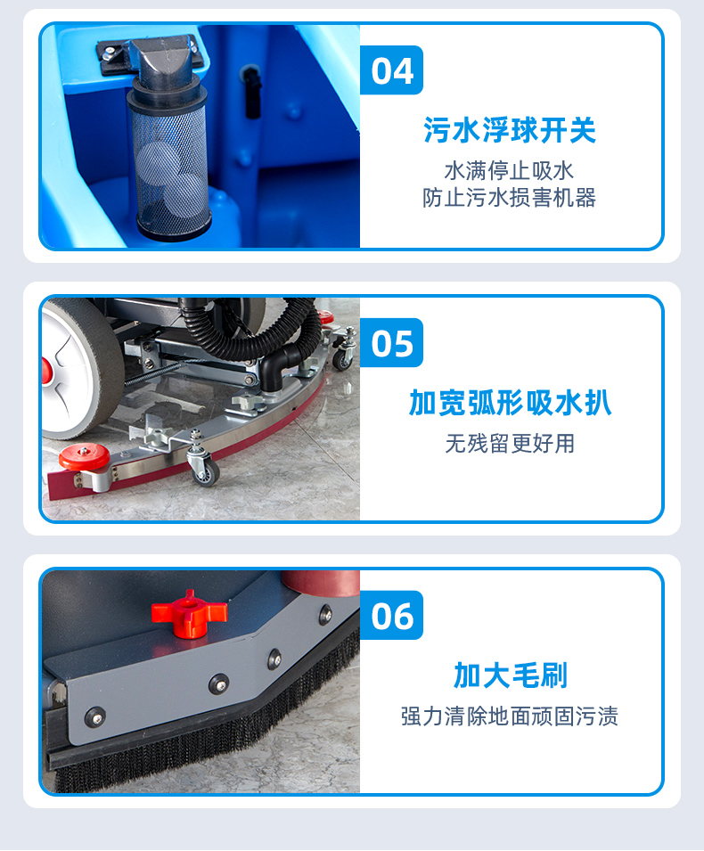 ★刷盘和吸水趴倒车自动升降,有效保护设备损伤;